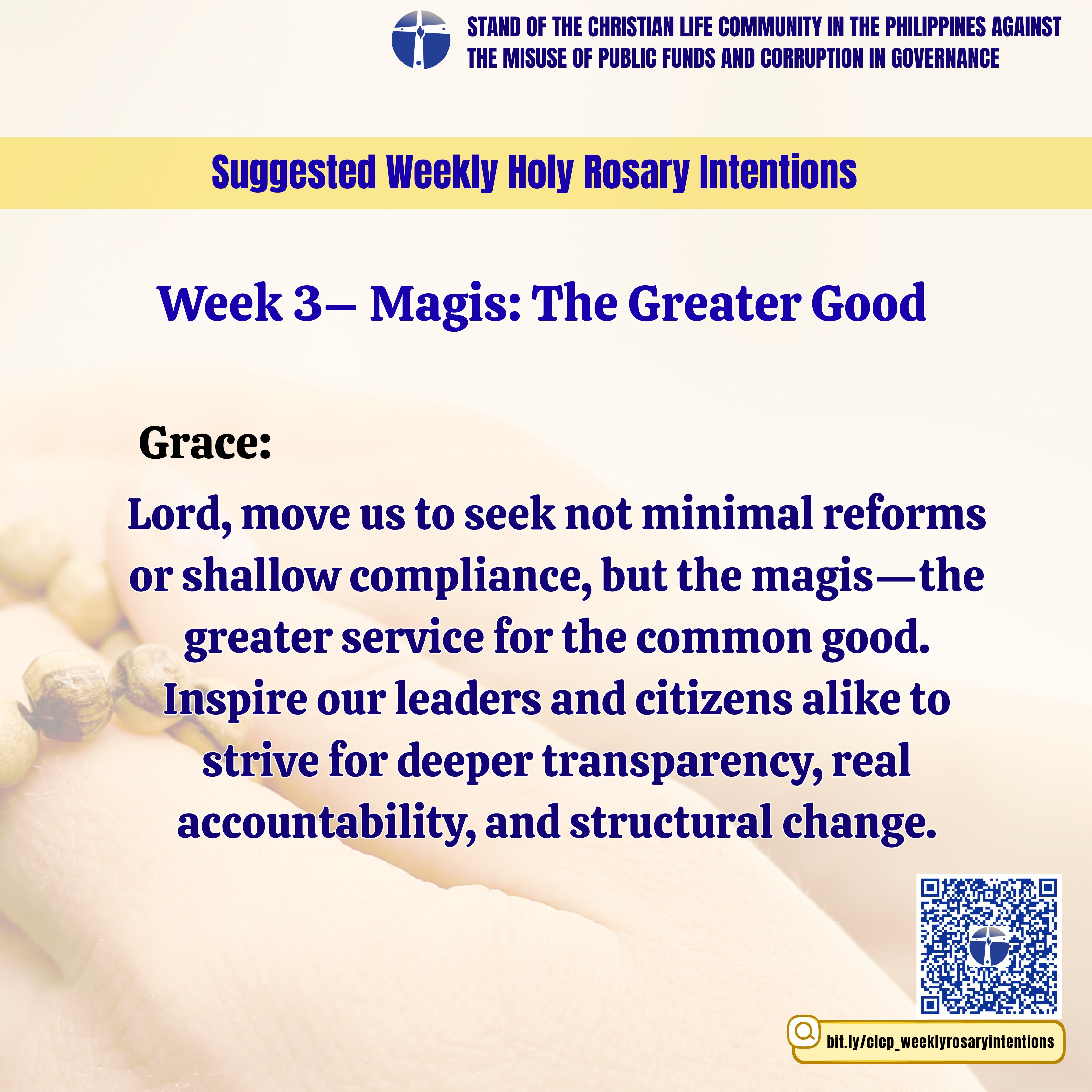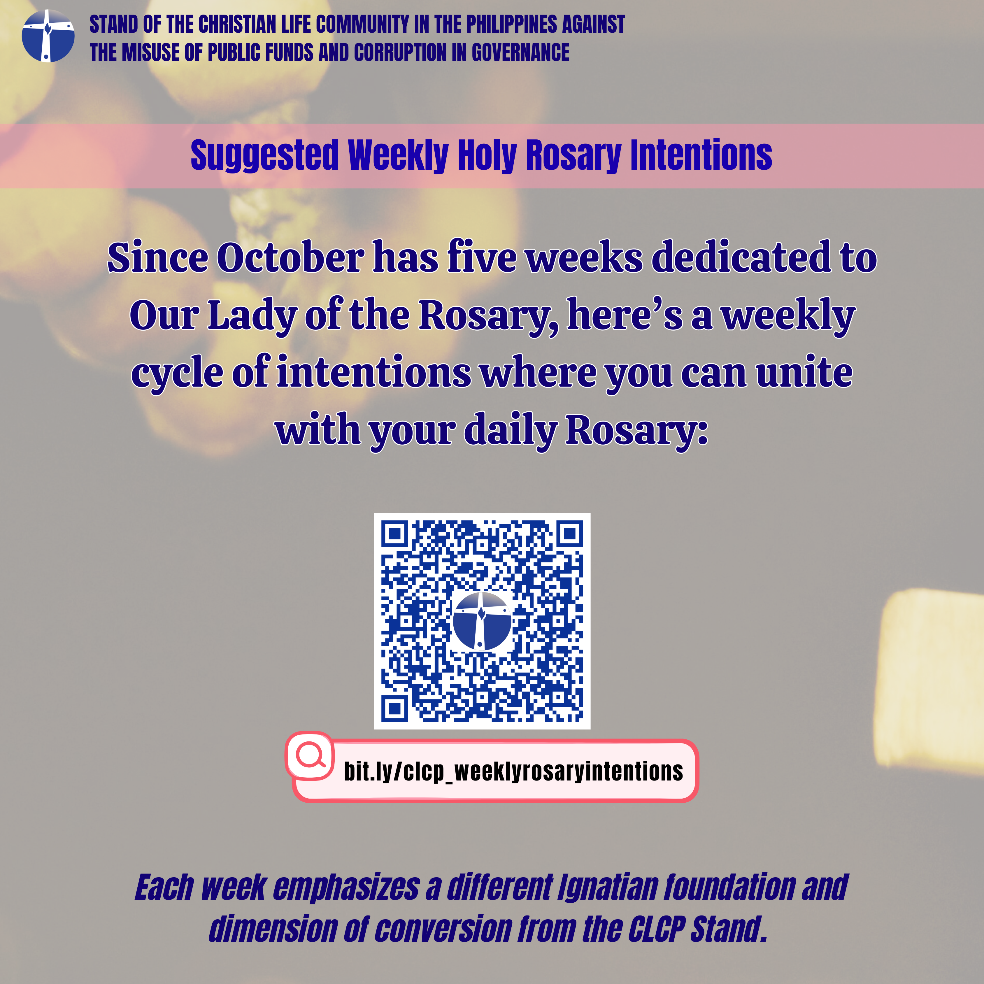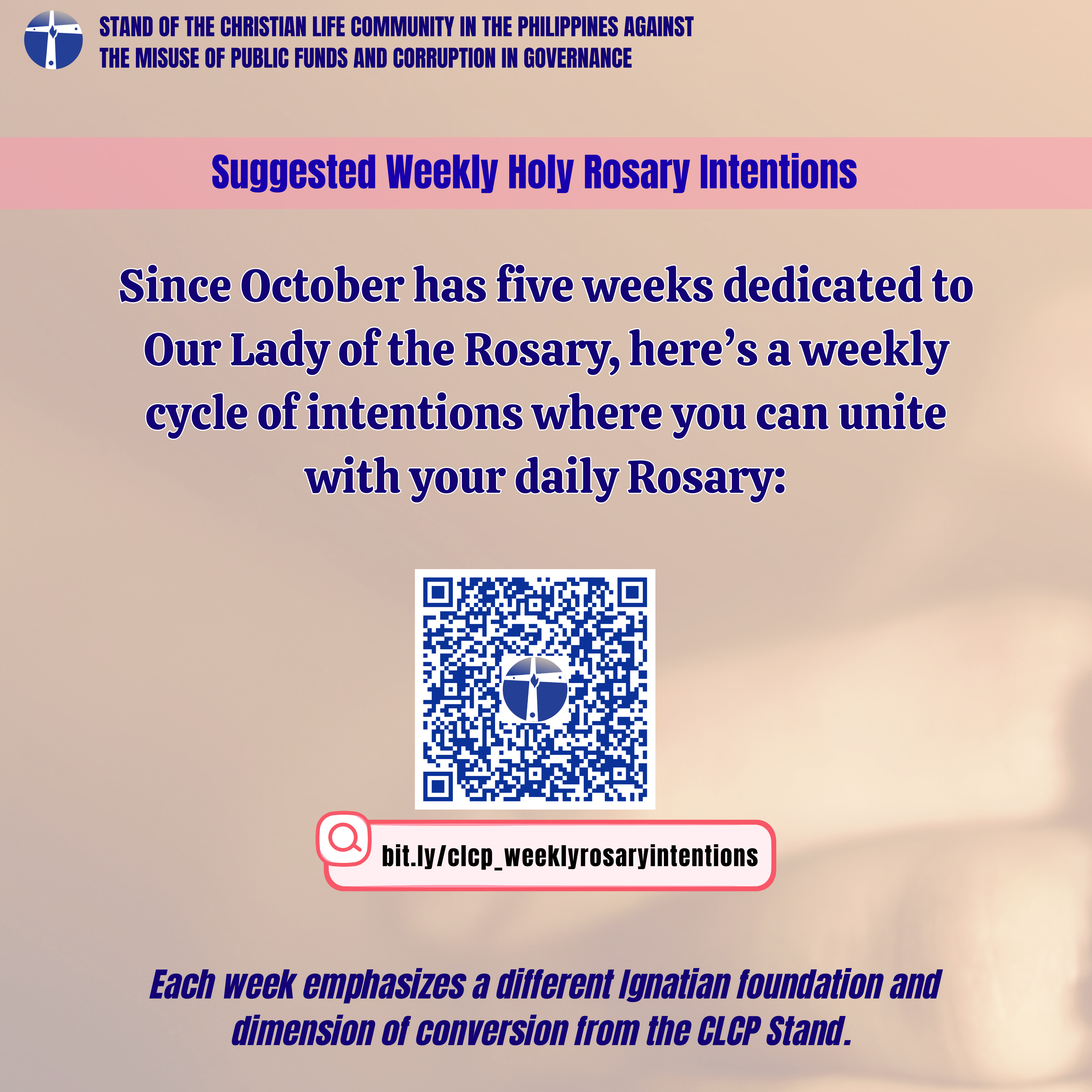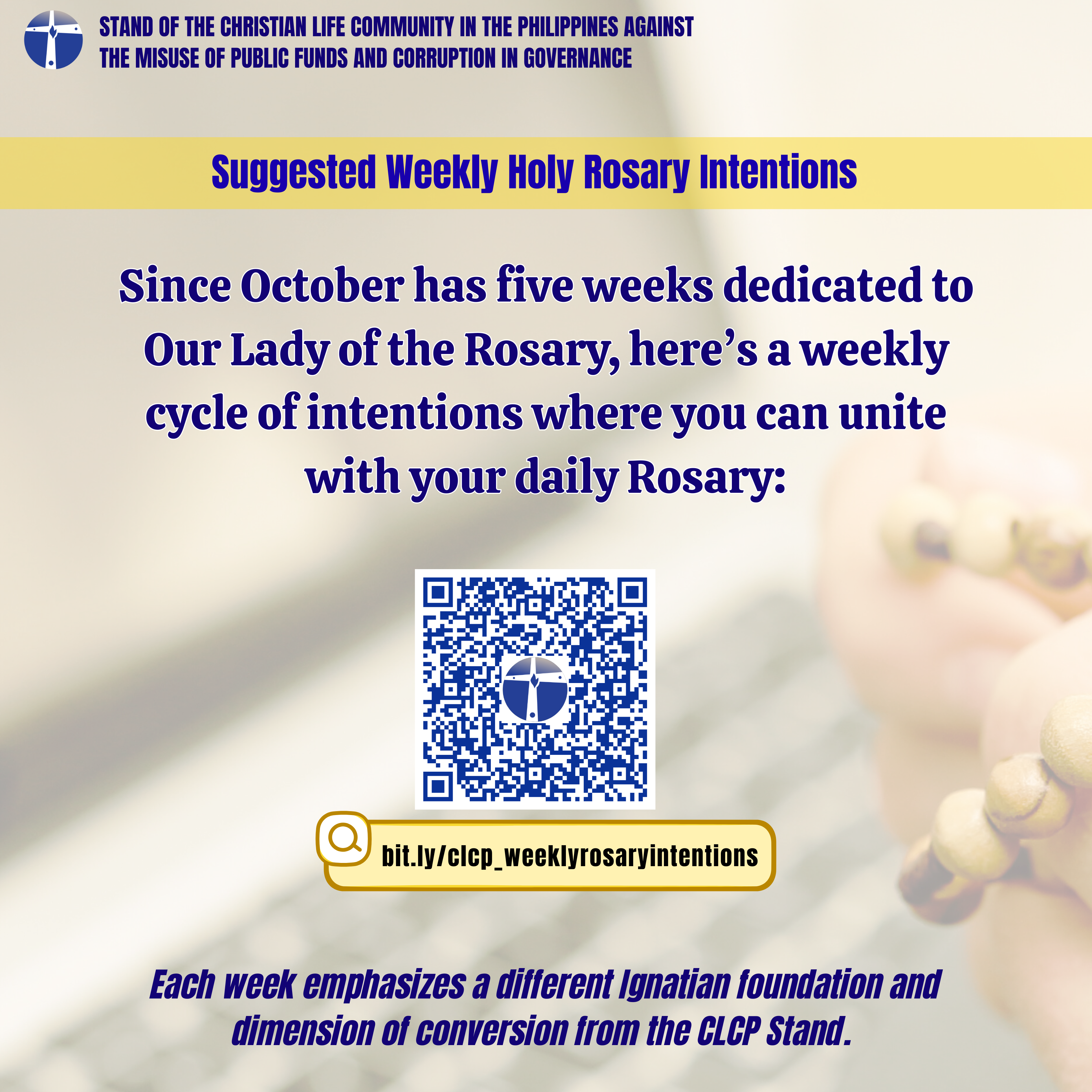 October is a special time dedicated to Our Lady of the Rosary, and this year, CLC Philippines invites you to unite your daily Rosary with weekly intentions rooted in Ignatian spirituality and the CLCP Stand.