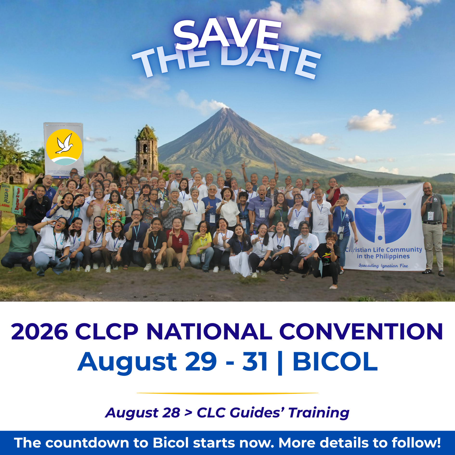 We are also happy to announce that our National Convention will be held on August 29–31, 2026, in Bicol, and our CLC Philippines Guides’ Training will be held on August 28, 2026 also in Bicol. Please save the date for this important gathering. We extend our heartfelt gratitude to our Christian Life Communities in Bicol for their generosity in accepting the invitation to host the National Convention.